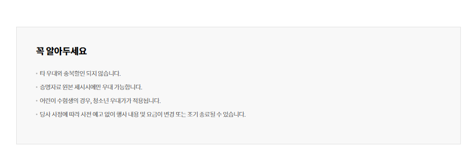 - 성인 요금은 수험생 본인에 한하며, 어린이 수험생의 경우 청소년 요금이 적용됩니다.
