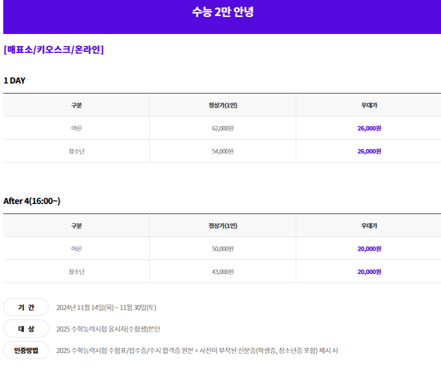 - After 4 우대가 (16:00 이후 입장권)