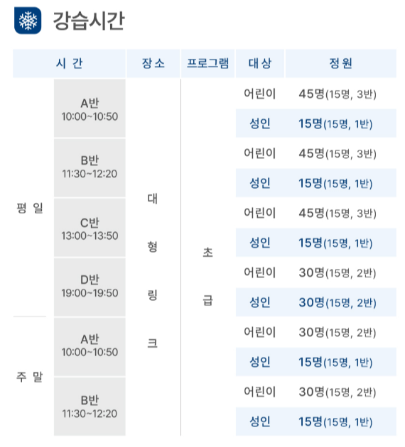- 강습 기간: 2024년 12월 24일 ~ 2025년 2월 6일