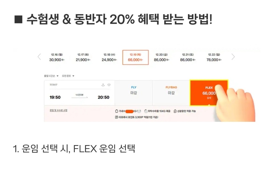 - 적용 노선: 제주항공 국내선 FLEX 요금제
