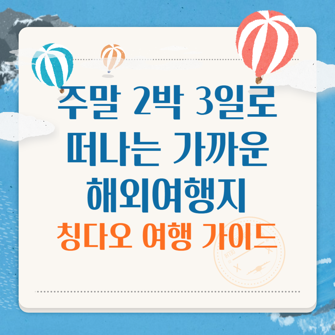 칭다오는 한국에서 비행기로 약 2시간 남짓 걸리며, 짧은 거리 덕분에 2박 3일 주말 여행으로 알차게 다녀오기 좋은 곳입니다. 특히 서울과 부산 등 주요 도시에서 칭다오로 가는 항공편이 직항으로 운행되어 있으며, 여행 시즌에 따라 저렴한 항공권을 손쉽게 구할 수 있습니다. 다양한 항공사에서 프로모션을 통해 왕복 항공권을 10만 원대에도 구입할 수 있어 가성비 높은 해외여행을 계획할 수 있습니다.