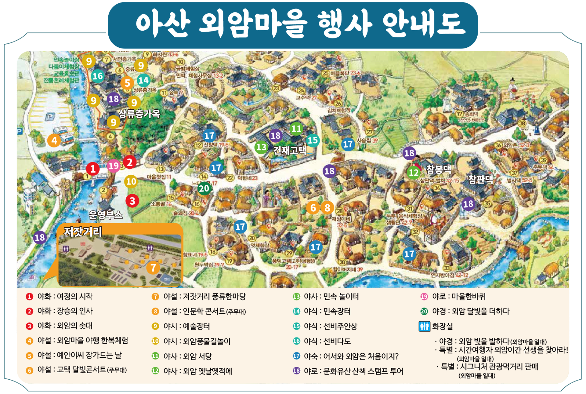 이번 아산 외암마을 야행은 전통과 현대를 아우르는 다채로운 프로그램으로 여러분을 맞이할 준비를 하고 있습니다. 가족, 연인, 친구들과 함께 조선시대의 정취를 느끼며 잊지 못할 추억을 만들 수 있는 특별한 기회를 놓치지 마세요! 많은 관심과 참여 부탁드립니다.